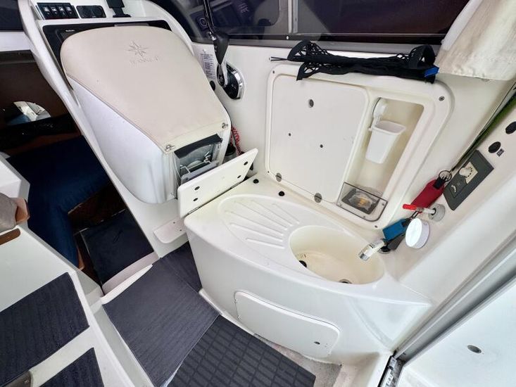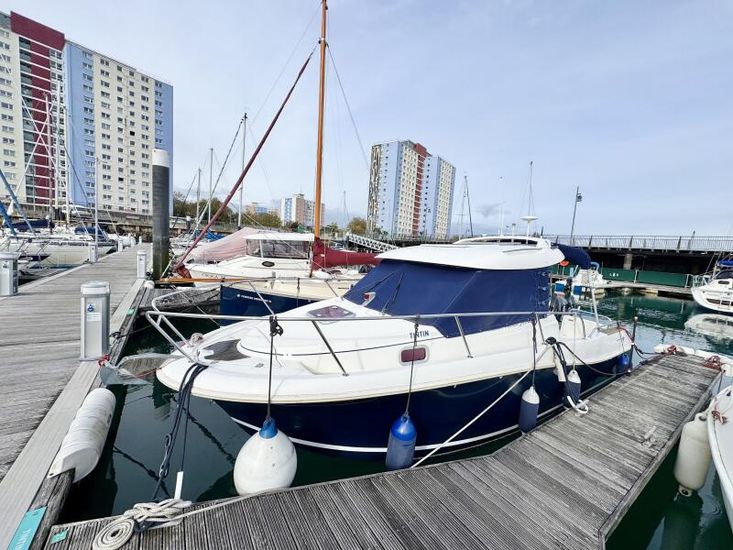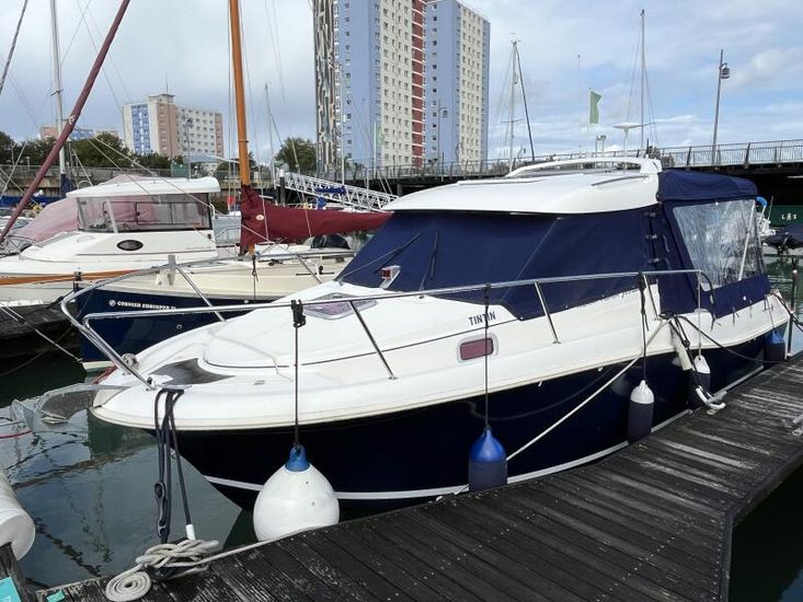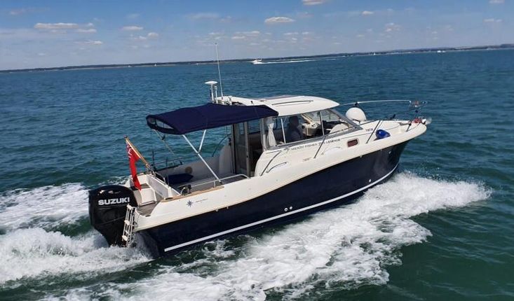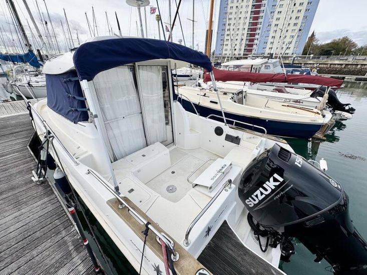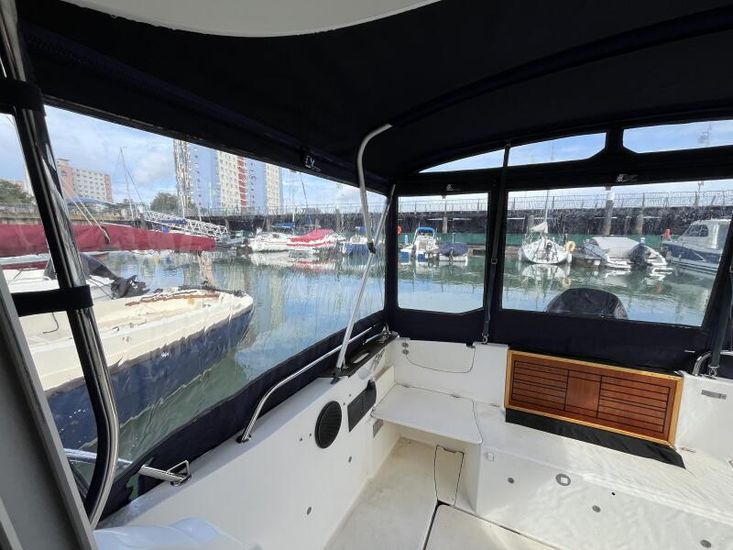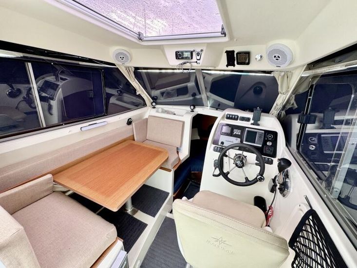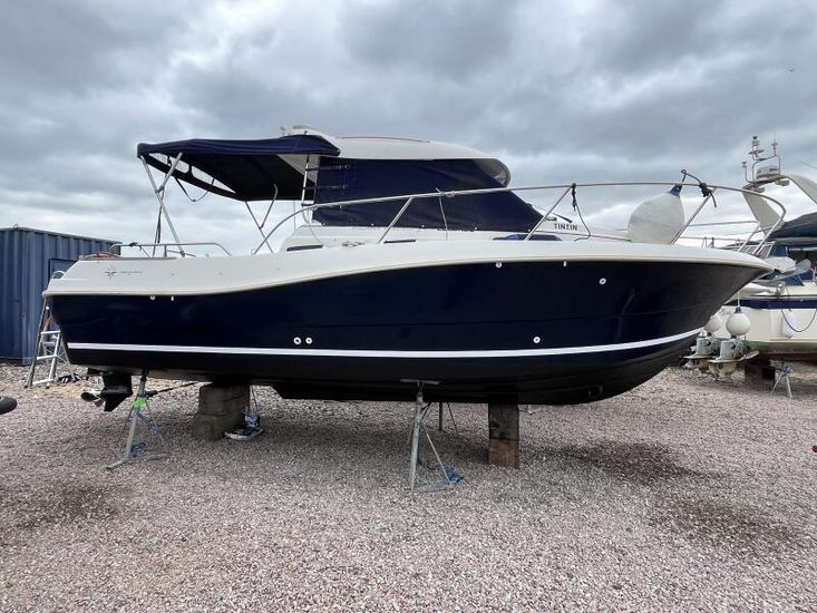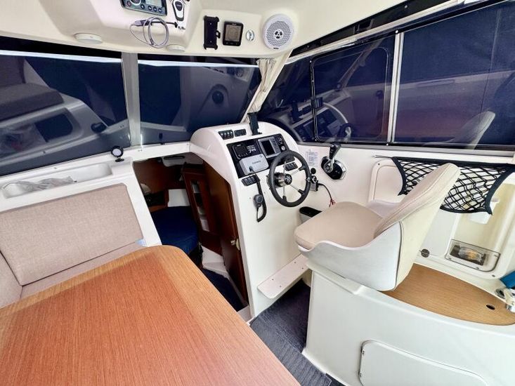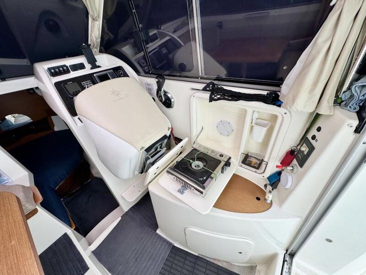 Tintin is a great example of the MF725, offering the perfect balance of comfort, performance, and practicality. Designed for both relaxed coastal cruising and day boating adventures, the 725 combines Jeanneau’s signature seaworthy hull with smart interior design and a surprisingly spacious layout with accommodation for 4 - certified for 8. Tintin presents in excellent condition and has clearly been well maintained and improved. She was fitted with her current Suzuki engine in 2022, with full service history and only 44 hours. In 2024 she was upgraded with SeaStar hydraulic power-steering. With her enclosed wheelhouse, comfortable saloon, galley, and convertible forward cabin, she’s perfectly suited for weekend getaways or day trips in all weather conditions. The large aft cockpit provides ample space for entertaining, fishing, or simply enjoying time on the water.